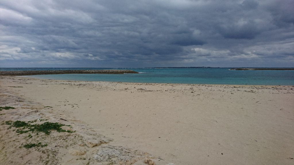 あざまさんさんビーチで海を眺めがらふうちゃん弁当を食べる。あざまサンサンビーチには弁当を食べるには充分すぎるテーブルや椅子があり、弁当を食す準備はOK